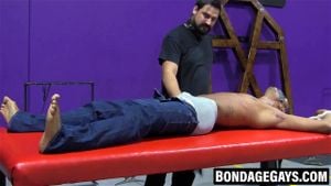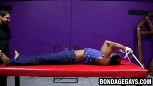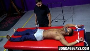 When kinky dom Kaden arrives to check out his new toy he doesn't take long before he's stripping the guy and gagging him.