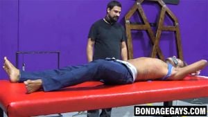Handsome RT cries out from flogger on his bare flesh