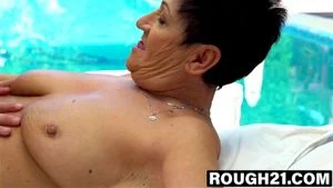 Anastasia seduces young Oliver poolside, trading tanning oil for passionate sex. Their heated encounter by the water proves that age gaps only heighten desire.