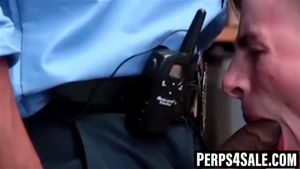 A skinny delinquent stud devours an officer's huge black cock, relishing every inch with insatiable desire.