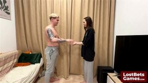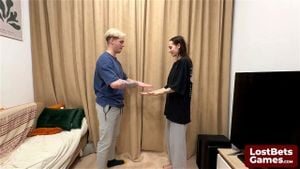 She sucks his dick after losing a Strip Hand Slap game
