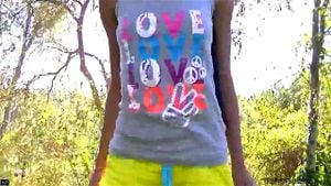 Tiny trisha digs her finger deep inside her pussy hole for solo pleasure fest outdoors