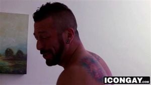 Muscular older man Hugh Hunter tops power bottom Armond Rizzo. They give each other a guy on guy dick sucking and ass fucking they craved for!