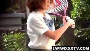 Sporty Japanese babe filmed playing in a tiny short skirt