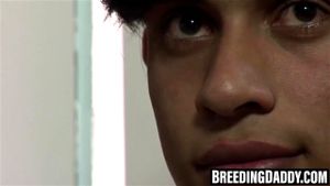 Handsome twink strips naked to suck his daddy off before being impaled on his cock and rammed raw.