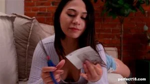 Perfect18.com video! After cropping and being creative, Roxy gets naked from the waist down, shaved slit already glistening, spreading wide, sliding her two fingers through her slick folds. Watch the full 4K video la Perfect18.com