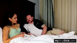 In a twist of fate, he storms into her room, ready to evict, but her lingerie catches his eye, a nipple teasingly visible. As he crawls onto the bed, demanding a "negotiation," she spreads her legs, smirking at his tiny, shriveled cock.