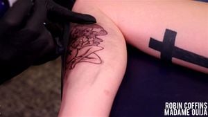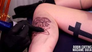 My Tattoo girls is BACK and this time we have a Tgirl Tattoo artist! Welcome Madame Ouija, I'm here to pop her cherry and she's here to fill me with ink and cum!