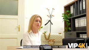 Lilly, a reserved blonde, went to the bank.determined to understand why her loan rate had suddenly gone up. She was visibly shaken - worried, irritated, and intent on getting clarity. Her agitation only made her look even more delicate: faintly flushed cheeks, an unsteady voice, and eyes burning with determination. The loan manager greeted her with standard courtesy, but as the discussion unfolded, he couldn’t ignore the growing tension in the room. Their conversation shifted from formal explanations to something more personal—pauses stretching longer, glances becoming more thoughtful, the atmosphere thickening with unspoken emotion. Wanting to sort things out thoroughly, he suggested they continue the discussion in a private office to “go over the details carefully.” Behind that door, the dialogue about loan terms took an unexpectedly deep and personal direction—far beyond numbers and contracts