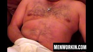 Fat dudes aren't always sexy, but this hairy dude definitely is when he takes his dick and wanks.