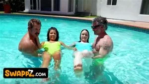We knew swimming lessons would be fun, but getting to learn from our hot step dads made it way fucking better! Of course, we had to play it up a little bit. In our cute onesie swimsuits, we would splash around, get our titties wet, and have them grab onto us. When we had each other’s stepdads alone, we dove down low to try underwater BJs! Sucking cock underwater isn’t easy, but we knew it would get our stepdads right where we wanted them. Poolside, we made quick work of their cocks, slipping down their swim trunks so we could take a ride. Our pussies were already wet from the pool, but when they started fucking us, we were gushing. Needless to say, our swim lessons were unforgettable.