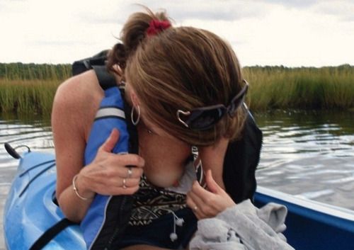 Slut bending over and letting her nipple be seen