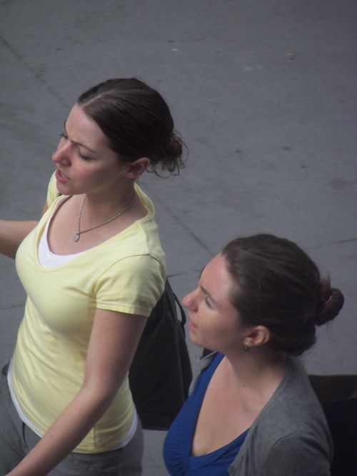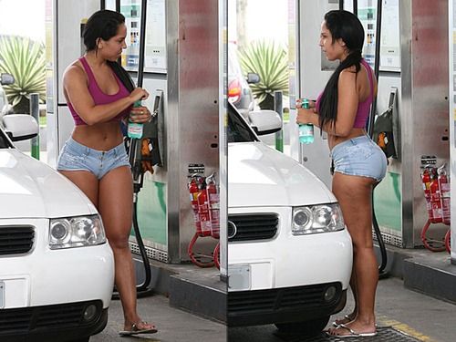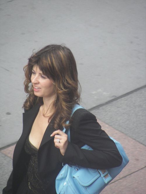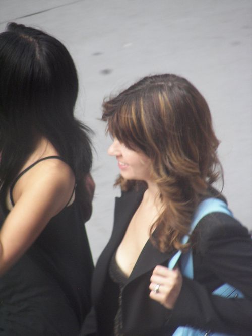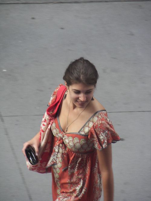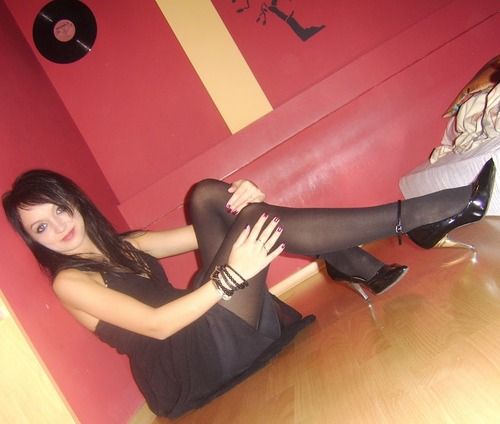 Shiny pantyhose and nice view under her skirt. Woman in…