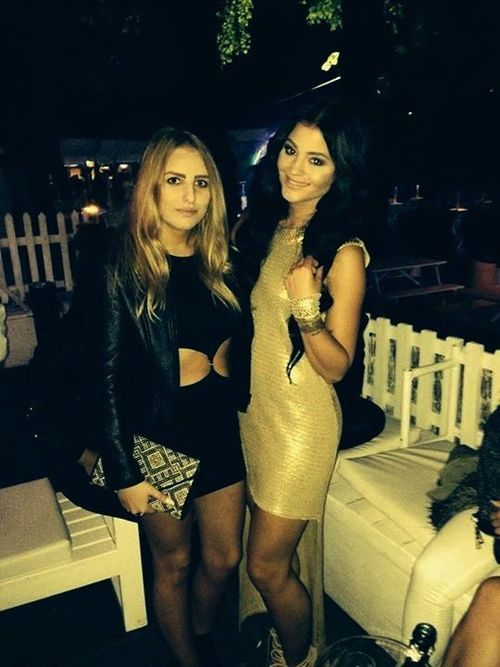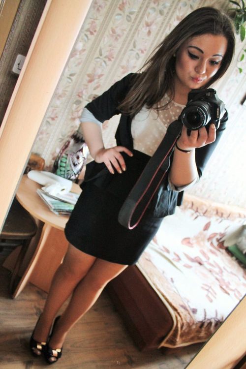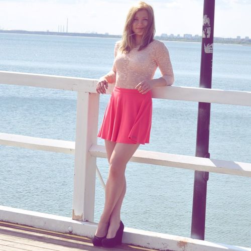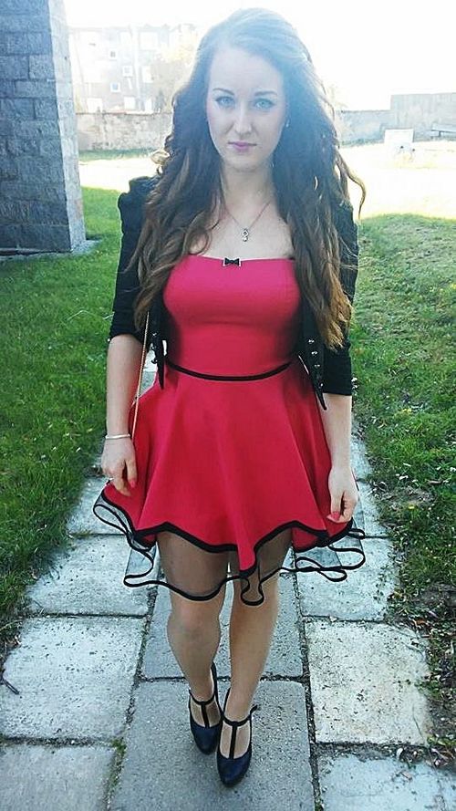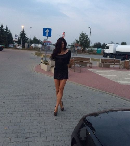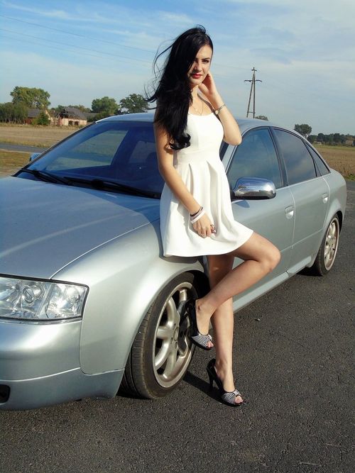 Nice sexy brunette in short white dress outdoors