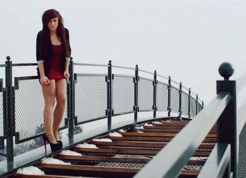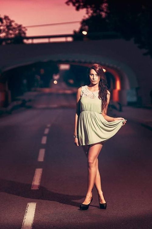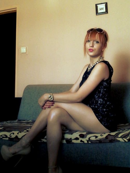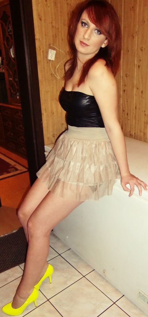 Leggy babe in tight short jeans mini skirt