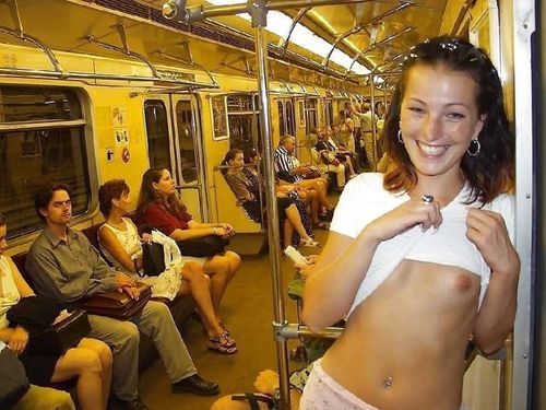 Brunette petite naked in public
