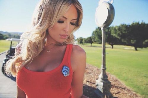Hot blonde wife flashing her breasts on golf course
