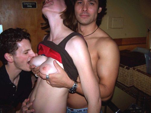 Having fun flashing her boob at a party.